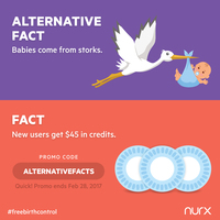 San Francisco-based Nurx, which provides on-demand, birth control to women, is taking a hard jab at now-President Trump with a promo for free credits on the service. The startup--backed by $5.3M in funding--said that in February, users who use the promo code 'AlternativeFacts' will receive $45 in credit for free birth control through the service. Last month, the company's promo code was 'TinyHands', and in December, 'DonaldTrump'. The company currently offers its service up in California, New York, Washington DC, Washington State, Illinois, Virginia, and Pennsylvania.